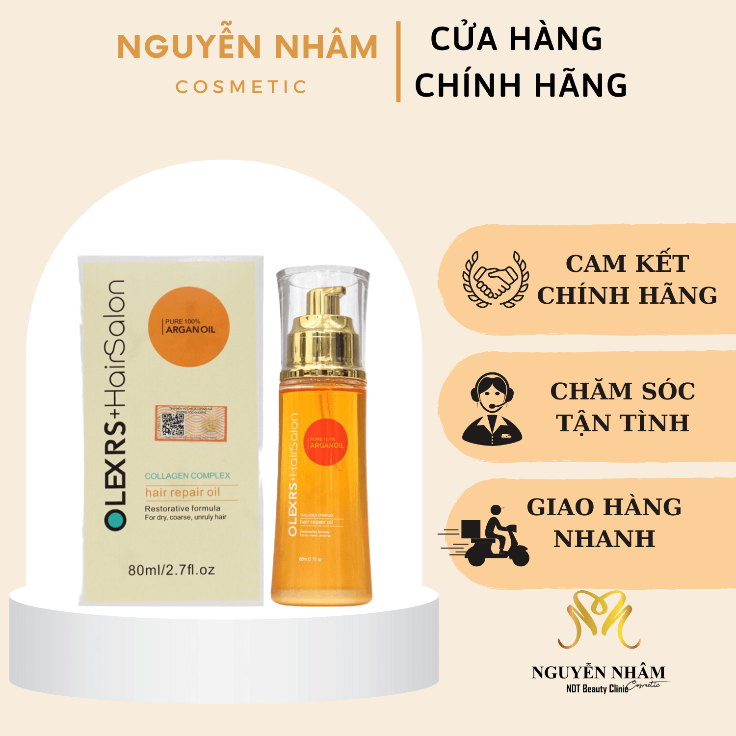 Tinh Dầu Dưỡng Tóc Olexrs+HairSalon Collagen Complex Hair Repair Oil 80mL là tinh chất phục hồi tóc hoàn hảo với chiết xuất chính từ dầu Argan – thành phần bí quyết tạo nên thương hiệu dưỡng tóc nổi tiếng từ Anh Quốc