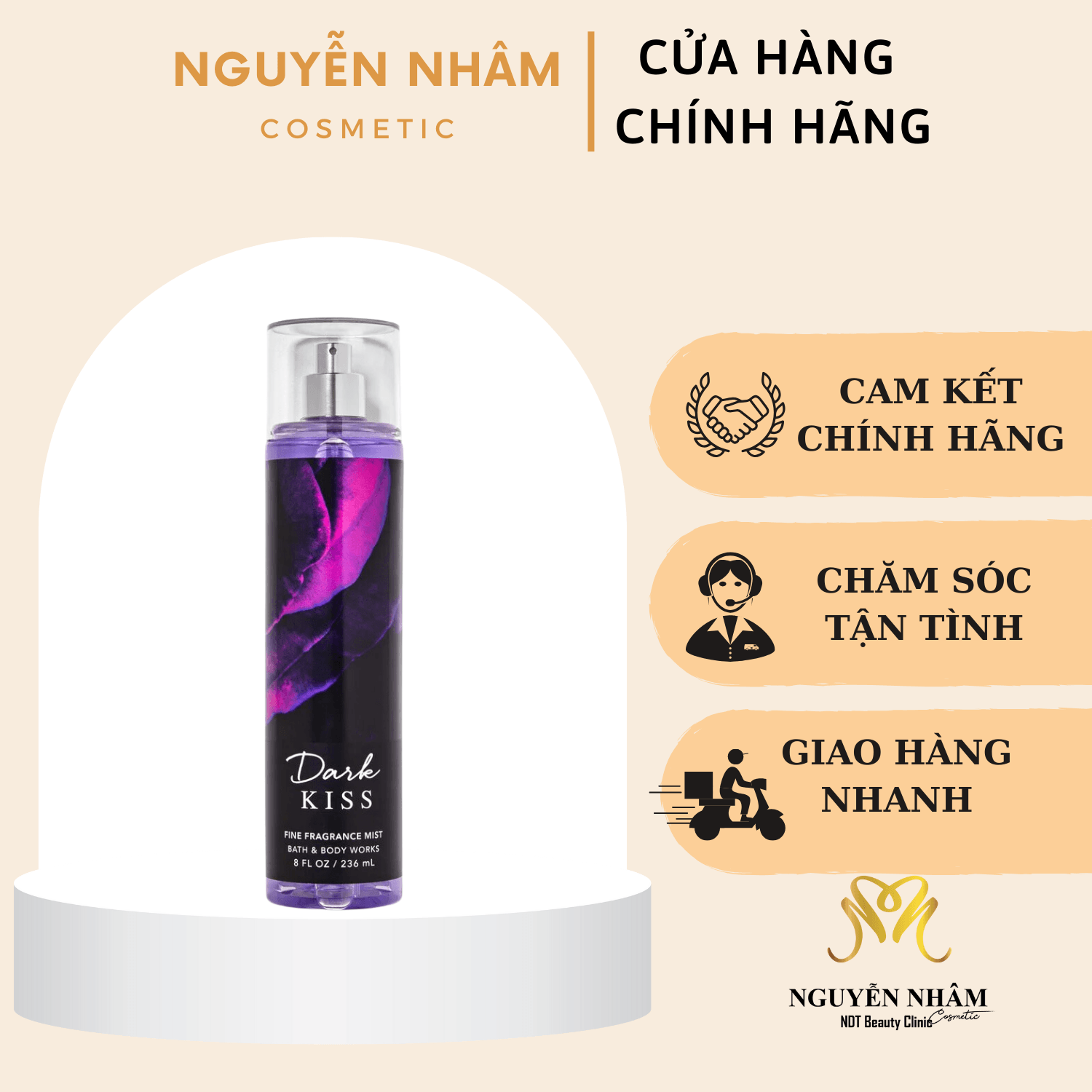 Xịt Thơm Bath & Body Works Dark Kiss Fine Fragrance Mist phù hợp với những cô nàng cá tính, hiện đại. Hương thơm thích hợp với với thời tiết lạnh của mùa thu và đông, đặc biệt là vào ban đêm, phù hợp với những cuộc hẹn hò lãng mạn, hay bữa tiệc ngoài trời.